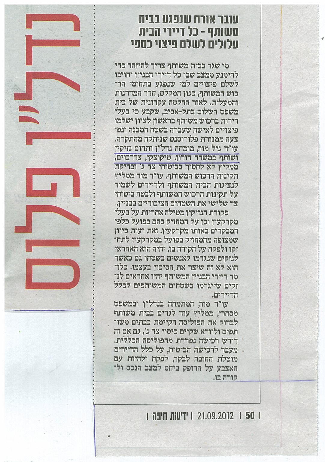 עובר אורח שנפגע בבית משותף-כל דיירי הבית עלולים לשלם פיצוי כספי