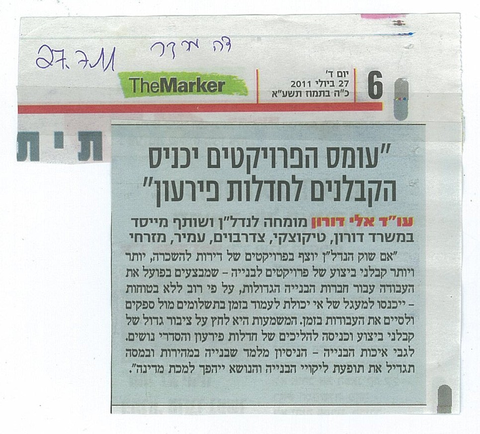 "עומס הפרוייקטים יכניס הקבלנים לחדלות פירעון", אומר עו"ד אלי דורון ממשרדנו.
