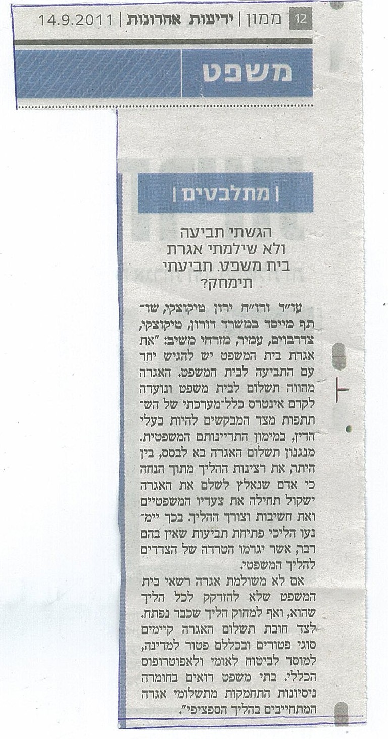הגשתי תביעה ולא שילמתי אגרת בית משפט. תביעתי תימחק? עו"ד ירון טיקוצקי עונה.